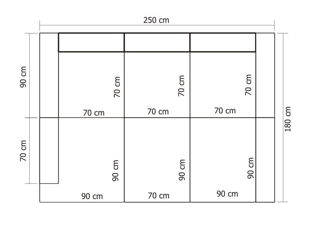 Szerokość 250 cm sprawia, że narożnik DUBAJ doskonale sprawdza się zarówno w przestronnych, jak i nieco mniejszych wnętrzach. Oferuje on optymalne wykorzystanie przestrzeni bez poczucia przytłoczenia.