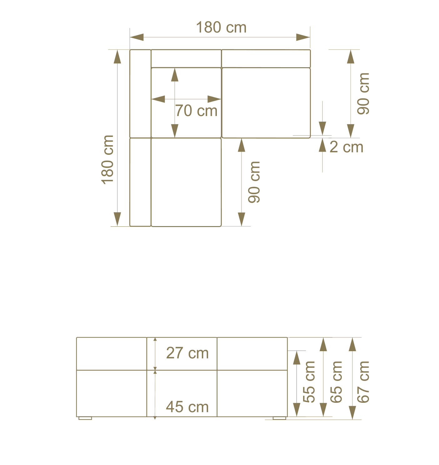 NAPO to innowacyjna sofa modułowa, stworzona z myślą o optymalnym wykorzystaniu przestrzeni. W podstawowym złożeniu mierzy 180 cm × 180 cm (patrz. rys. techniczny). Odkryj sofę, która dostosuje się do Twojego stylu życia, zwłaszcza gdy liczy się każdy centymetr w mieszkaniu. NAPO jest idealna do mieszkań w bloku, wynajmowanych przestrzeni, a także do pokoi młodzieżowych, oferując elastyczność i komfort, który zawsze pasuje.